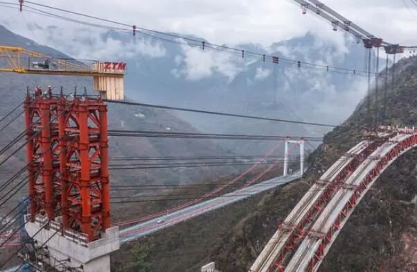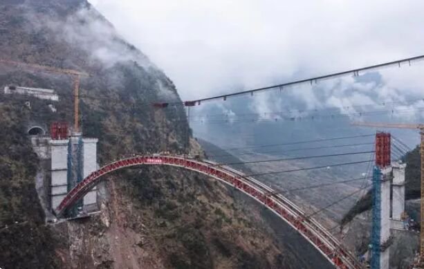完成吊装承建的纳晴高速乌蒙山大桥右幅主拱圈顺利完成合龙