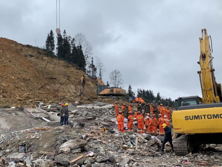 消防救援部队划定搜救区域,通过人机(大型工程机械)协同、编组作战,以房找人、以犬找人、以装找人的方式,经过4天3夜的尽力,1月25日19时26分,云南省消防救援总队找到第44名在册失联人员。